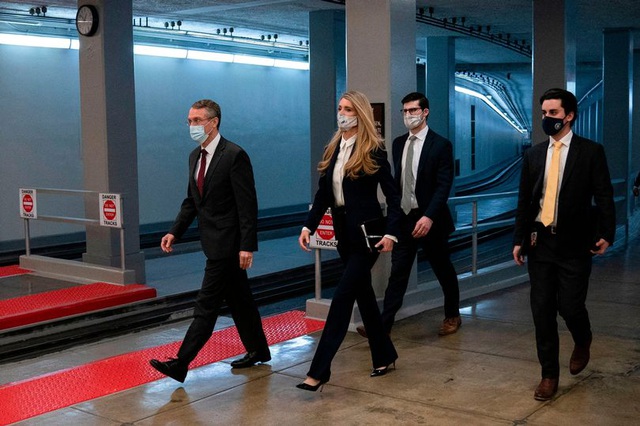 Ngày 6/1, tòa nhà quốc hội Mỹ đã đối mặt với một vụ bạo loạn khi người ủng hộ ông Trump tràn vào bên trong, buộc các nghị sĩ phải di tản trong lúc họ đang họp mặt để xác nhận kết quả bầu cử tổng thống. Trong ảnh: Thượng nghị sĩ Kelly Loeffler bên trong đường hầm dưới nhà quốc hội hôm 6/1. (Ảnh: AFP)