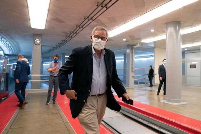 Trong tình huống hỗn loạn, các nghị sĩ đã được lực lượng an ninh đưa xuống dưới cầu thang, băng qua một đường hầm ngầm đặc biệt, ít được biết đến, nằm dưới nhà quốc hội để có thể ra khỏi tòa nhà. Trong ảnh: Thượng nghị sĩ Richard Burr ở dưới hầm ngầm. (Ảnh: Getty)