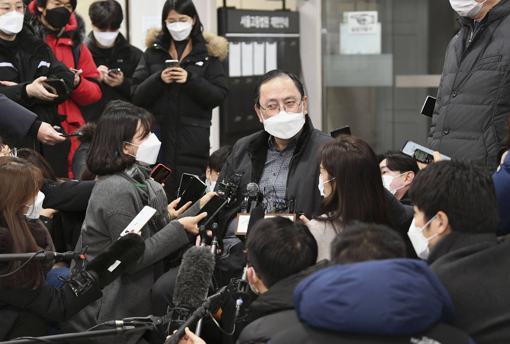 Ông Kim Gang Won, luật sư của các nguyên đơn trong vụ kiện, trả lời báo giới về phán quyết của tòa án Hàn Quốc. Ảnh: Kyodo.