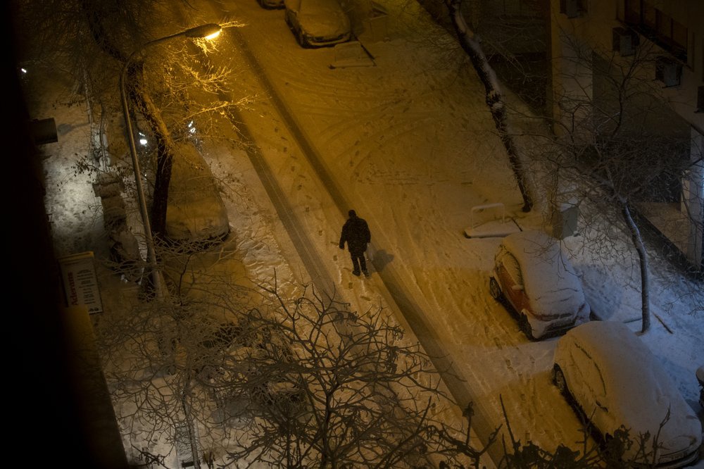 Cơn bão tuyết Filomena đổ bộ Tây Ban Nha từ ngày 8/1, mang tới lượng tuyết lớn chưa từng thấy ở Madrid kể từ năm 1971, theo cơ quan khí tượng Tây Ban Nha, AEMET. Tuyết tiếp tục rơi trong đêm sang ngày 9/1, nhiều khu vực ở Madrid có lúc chứng kiến lớp tuyết dày lên tới 50 cm. AEMET dự báo thủ đô Madrid và các khu vực thuộc miền trung Tây Ban Nha sẽ hứng chịu tuyết rơi trong 24 giờ tiếp theo. Ảnh: AP.