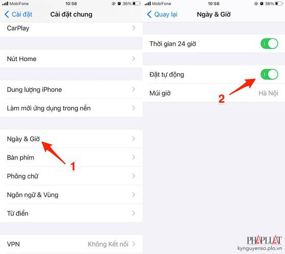 Thiết lập ngày giờ tự động trên iPhone. Ảnh: MINH HOÀNG