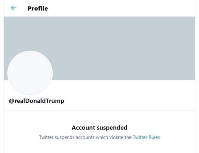 Tài khoản Twitter của ông Trump bị đình chỉ vĩnh viễn do "vi phạm quy định".