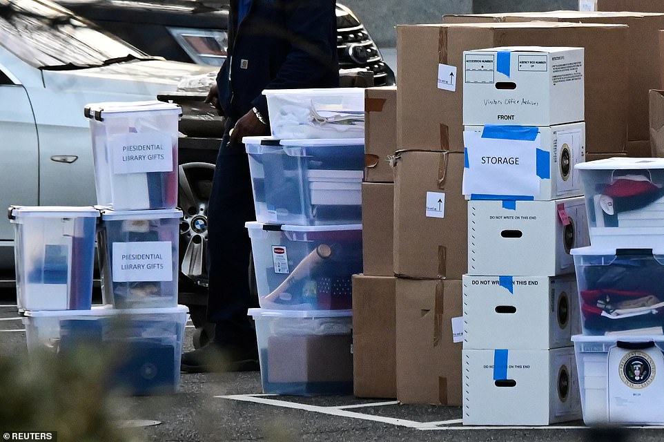 Một số hộp khác được dán chữ “quà lưu niệm từ thư viện Tổng thống”.