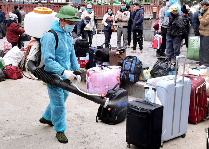 Chiều 16/1, tại luồng nhập cảnh của Trạm kiểm soát biên phòng cửa khẩu quốc tế Cầu Treo (Bộ đội Biên phòng Hà Tĩnh) đóng tại xã Sơn Kim 1, huyện Hương Sơn, hàng trăm lao động Việt Nam vừa trở về từ Lào, Thái Lan tập trung theo nhóm tại các lán đón tiếp. Các lao động đều đeo khẩu trang, đứng xếp hàng nghe nhà chức trách phổ biến quy định; hành lý xếp lại một chỗ giữa khu đất trống để phun khử trùng.