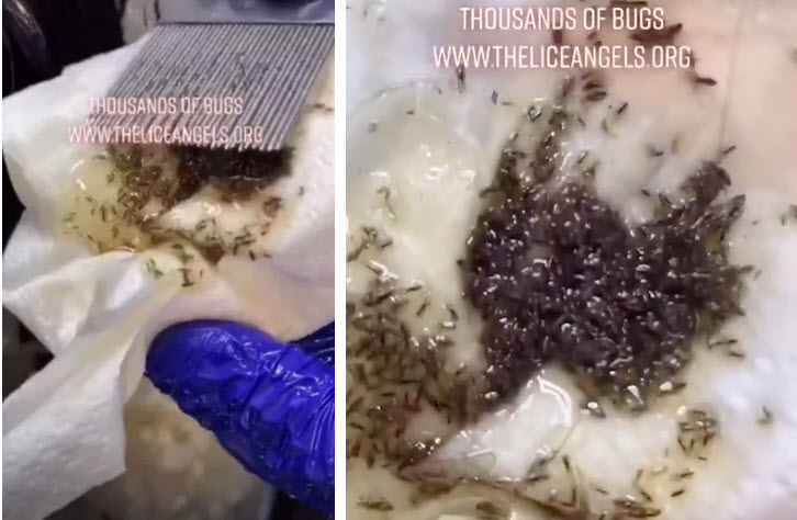 Một người phụ nữ sởn hết da gà khi chải tóc cho bé gái với thứ lúc nhúc rơi ra đầy từ đầu đứa bé gái khiến nhiều người rùng mình, họ còn chú thích nội dung có thể làm nhiều người sốc nặng để cảnh báo trước về những hình ảnh trong đó.