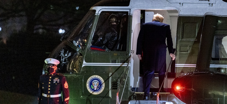 Ông Trump lên trực thăng Marine One ở Nhà Trắng ngày 4/1. Ảnh: AP.