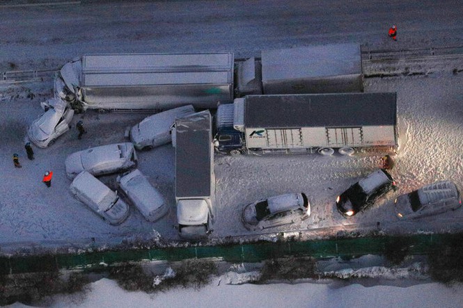 Vụ tai nạn xảy ra do tuyết rơi dày. Ảnh: AP