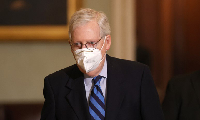Lãnh đạo phe Cộng hòa tại Thượng viện Mitch McConnell tới Thượng viện hôm 19/1. Ảnh: AFP.