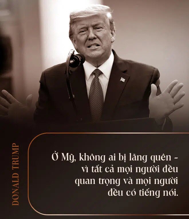 Trên hết, chúng tôi đã tái khẳng định tư tưởng thiêng liêng rằng ở Mỹ, chính phủ đáp ứng người dân. Ánh sáng soi đường của chúng tôi, Kim chỉ Nam của chúng tôi, niềm tin vững chắc của chúng tôi là chúng tôi ở đây để phụng sự các công dân cao quý của nước Mỹ. Bổn phận của chúng tôi không phải để phục vụ các lợi ích cá nhân, tổ chức, tập đoàn hoặc thực thể toàn cầu, mà là để phụng sự cho các công dân Mỹ, cho con cái của chúng ta và chính đất nước của chúng ta.