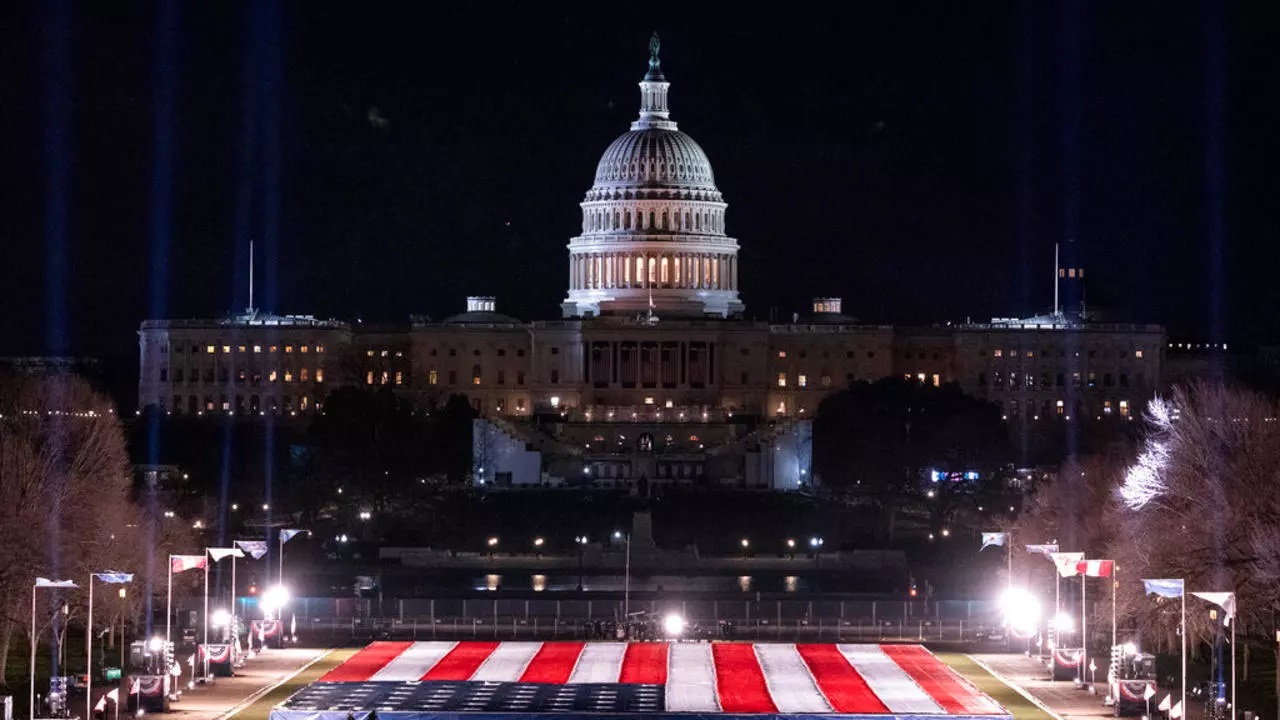 Khán đài trước Điện Capitol, Washington được chuẩn bị cho lễ tuyên thệ nhậm chức của tổng thống Mỹ Joe Biden và phó tổng thống Kamala Harris diễn ra ngày 20/01/2021. AP - Alex Brandon