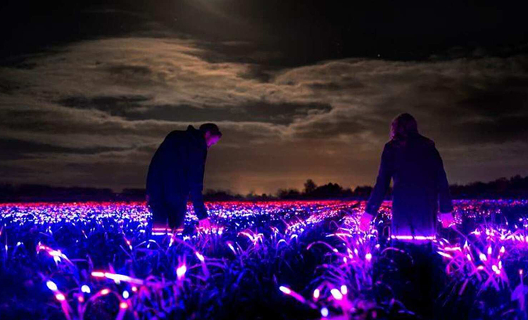 Chuyện về cánh đồng phát sáng vào ban đêm tại Hà Lan. Tại nông trại yên tĩnh ở thị trấn Lelystad (Hà Lan) sau khi mặt trời lặn bỗng xuất hiện cảnh tượng đẹp mắt với ánh đèn LED xanh, tím, đỏ bừng sáng giữa các rãnh cây trồng.