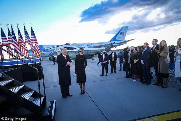 Xuất hiện tại lễ chia tay của ông Trump ở căn cứ Andrews có đầy đủ các thành viên khác trong gia đ́nh Trump, bao gồm Ivanka Trump, Jared Kushner, con trai cả Donald Trump Jr và bạn gái, cũng như con gái út Tiffany Trump và vị hôn phu vừa đính hôn.