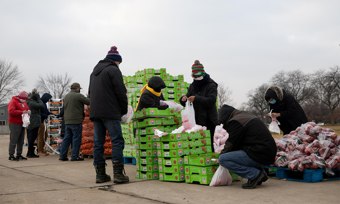 Trong lúc thất nghiệp diện rộng diễn ra, nhiều gia đình Mỹ phải vật lộn để trả hóa đơn mua hàng tạp hóa. Bộ Thương mại Mỹ báo cáo giữa tháng 12/2020, 13,7% người trưởng thành đôi khi hoặc thường xuyên thiếu ăn.