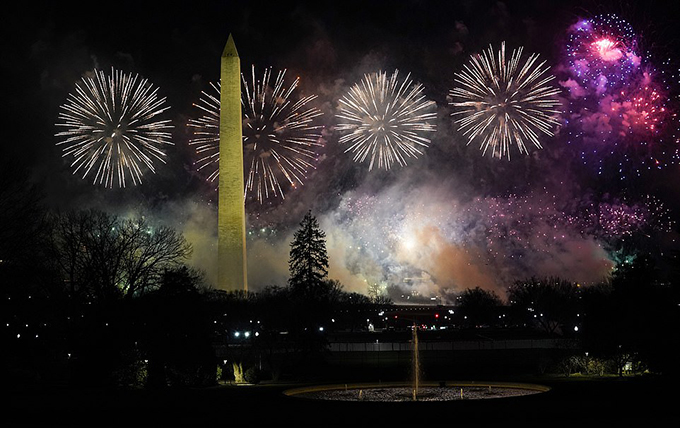 Pháo hoa rực sáng trên Nhà Trắng và Công viên Quốc gia.