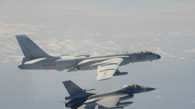 Eo biển Đài Loan là nơi có nguy cơ xảy ra xung đột cao kỷ lục. Trong ảnh; máy bay F-16 của Đài Loan bay giám sát H-6 của PLA ở gần không phận Đài Loan (Ảnh: CNA).
