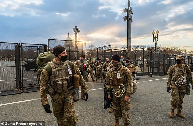 Trước lễ nhậm chức của ông Biden, gần 26.000 binh sĩ Vệ binh quốc gia, tới từ 50 bang, đã tập trung ở thủ đô Washington DC để sẵn sàng đối phó với các mối đe dọa an ninh leo thang và lo ngại bạo loạn sau vụ việc hôm 6/1 tại Điện Capitol.