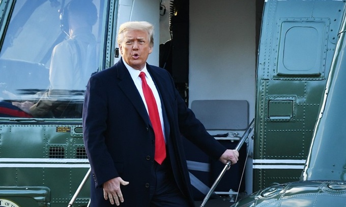 Cựu tổng thống Mỹ Donald Trump lên trực thăng rời Nhà Trắng hôm 20/1. Ảnh: AFP.