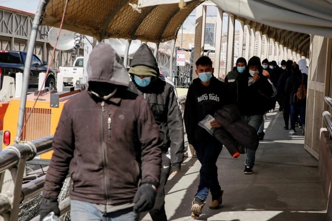 Người nhập cư bị trục xuất khỏi Mỹ đi về hướng Mexico tại cầu biên giới Paso del Norte. Ảnh: Reuters