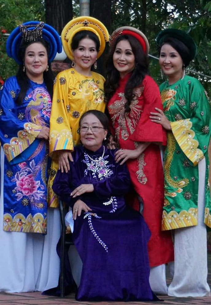 Thanh Hằng bên các chị em và mẹ - nghệ sĩ Kim Hoa. Gia đình nghệ sĩ có truyền thống lâu đời về nghệ thuật cải lương.