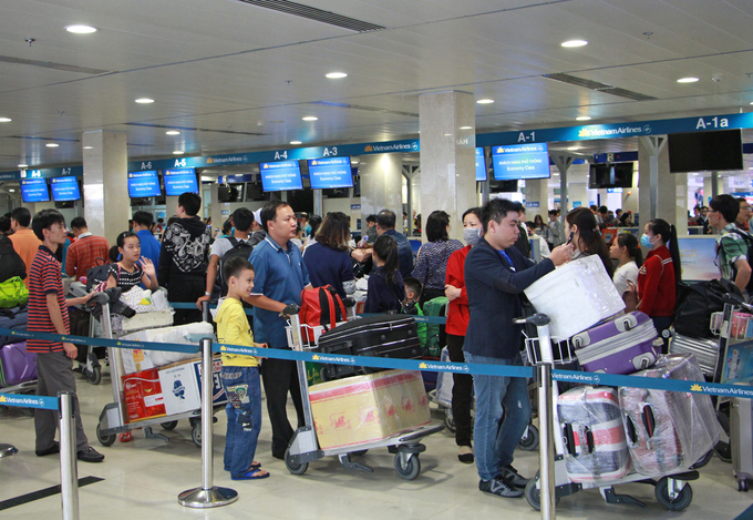 Khách chờ làm thủ tục tại sân bay Tân Sơn Nhất dịp Tết. Ảnh: Gia Minh.
