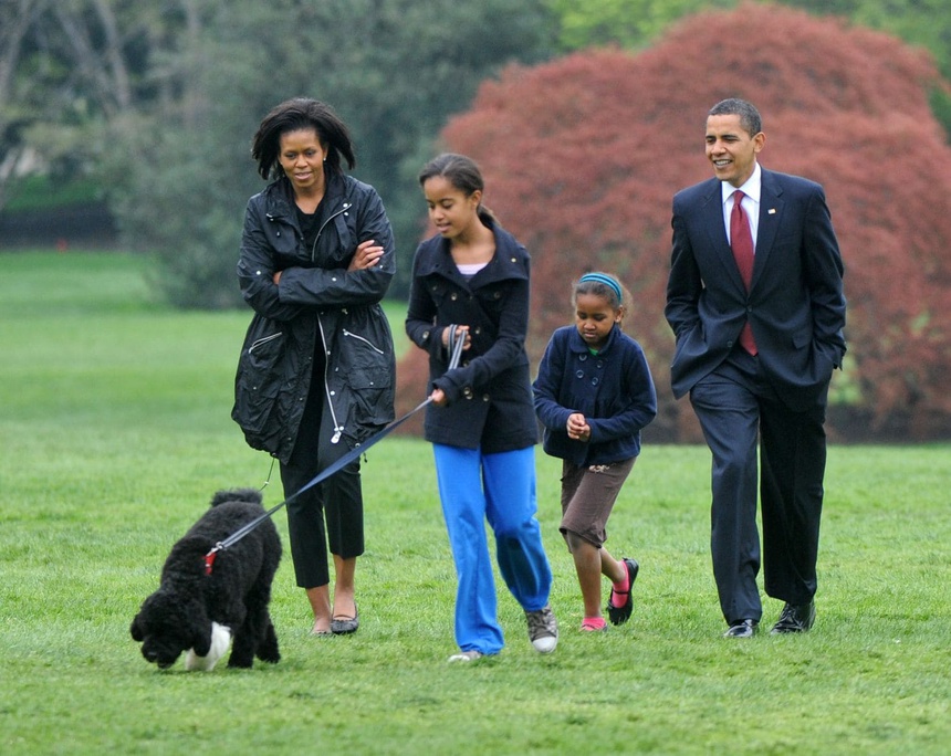 Gia đình cựu Tổng thống Obama tự dắt chó đi dạo trong nhà Trắng. Ảnh: Bill O'Leary/Washington Post.“Đệ nhất khuyển” làm gì ở Nhà Trắng cả ngày?