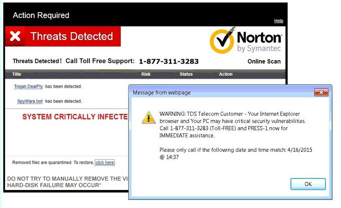 Bạn đừng hoảng loạn khi màn hình bất ngờ xuất hiện tin nhắn cảnh báo máy tính bị nhiễm virus. Ảnh: Tdstelecom.