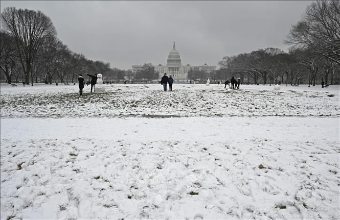 Tuyết phủ trắng xóa tại Washington, DC, Mỹ ngày 31/1/2021. Ảnh: AFP/TTXVN