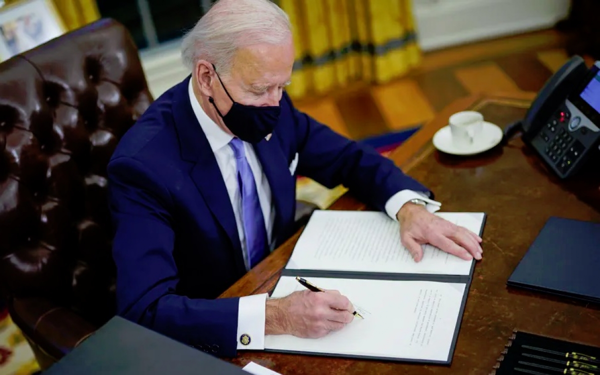 Tổng thống Mỹ Biden ký một số sắc lệnh đảo ngược chính sách của cựu Tổng thống Trump. Ảnh: Washington Post.