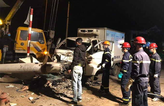 Xe tải sau đó đâm gãy 2 cột điện bêtông nằm cạnh đường. Cột điện đổ đè trúng xe máy của anh Tiến. Tài xế Huy và anh Tiến chết tại chỗ, nạn nhân Anh tử vong khi tới bệnh viện.