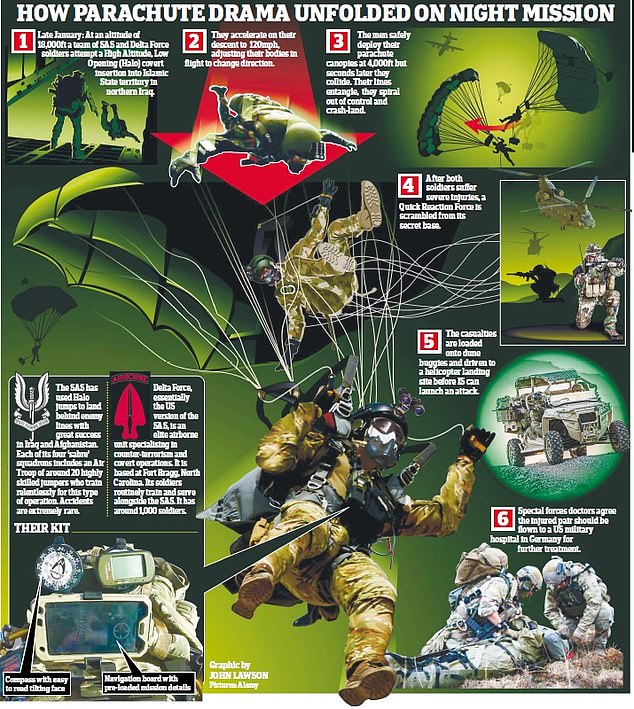 Đặc nhiệm Mỹ và Anh đâm vào nhau khi nhảy dù từ độ cao 5.400 mét ở nơi có khủng bố IS. Thật nguy hiểm và hậu quả như thế nào?
