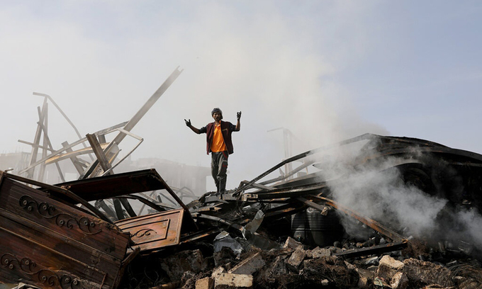 Khung cảnh đổ nát sau cuộc không kích của Arab Saudi ở thủ đô Sana, Yemen hồi tháng 7/2020. Ảnh: Reuters.