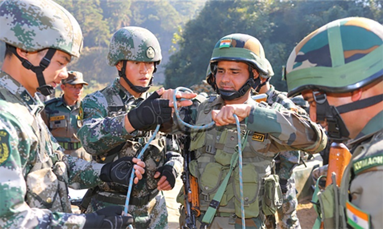 Binh sĩ Trung Quốc và Ấn Độ trong cuộc diễn tập chung tại bang Meghalaya, Ấn Độ, tháng 12/2019. Ảnh: PLA.