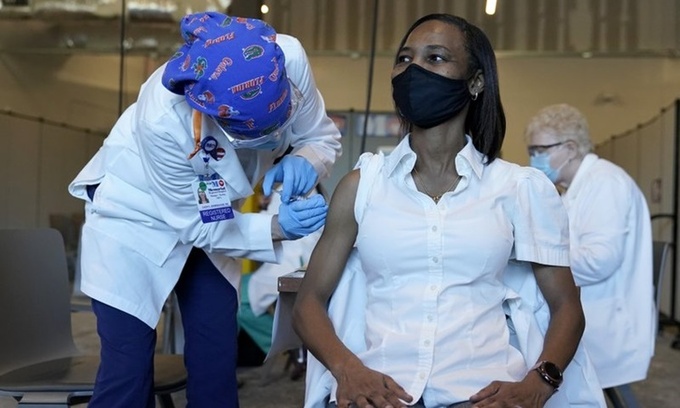 Một y tá được tiêm vaccine Covid-19 tại Florida hồi tháng 12 năm ngoái. Ảnh: AP.
