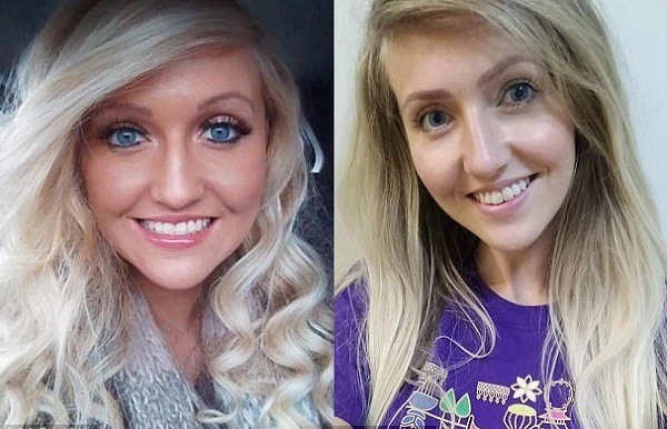 Amy Robb khi trang điểm (trái) và để mặt mộc (phải).
