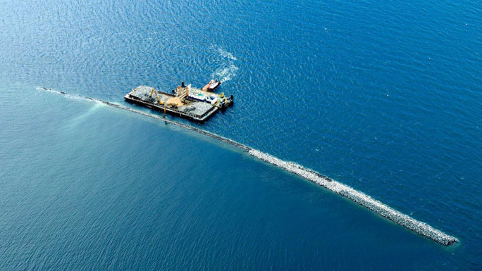 Công trình đê chắn sóng cho bến cảng ở Rodby được thực hiện giữa tháng 7-2020. Ảnh: Kristian Danielsen