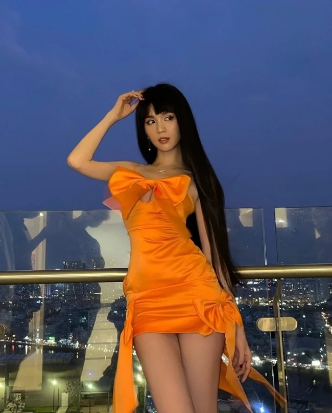 Mới đây trên trang cá nhân, "gà cưng" Vũ Khắc Tiệp đã khiến dân tình phải "nín thở" với pha tạo dáng với váy ngắn cũn cỡn. Ngọc Trinh đội tóc giả dài, để mái bằng khiến cho diện mạo của mẫu nữ nhìn khác lạ hơn thường ngày. Đi kèm với những bức ảnh này, Ngọc Trinh triết lý đầy sâu sắc: