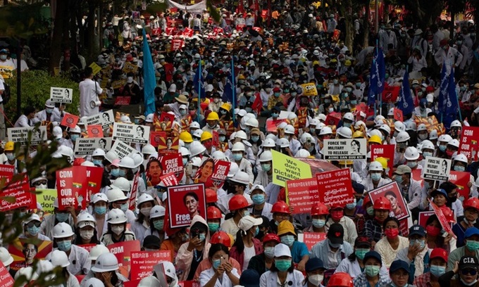 Quân đội Myanmar hôm 1/2 tiến hành cuộc đảo chính chớp nhoáng, bắt Cố vấn Nhà nước Aung San Suu Kyi và một loạt quan chức chính phủ. Hàng chục nghìn người Myanmar đã xuống đường trong những ngày qua để biểu tình phản đối cuộc đảo chính, bất chấp lệnh giới nghiêm và các hạn chế của quân đội.