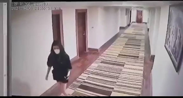 Hình ảnh camera an ninh cho thấy một người Trung Quốc trốn khỏi khu cách ly trong khách sạn (ảnh: Khmer Times)