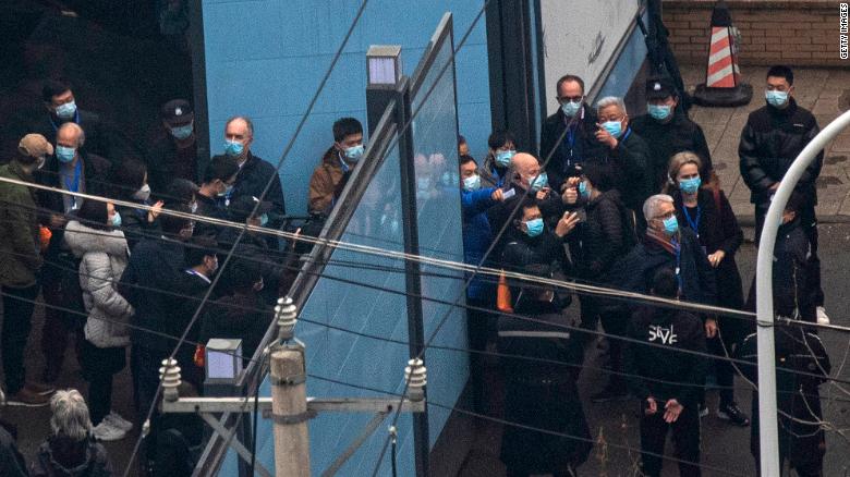 Các chuyên gia của WHO mặc đồ bảo hộ trong chuyến thăm Vũ Hán (ảnh: CNN)