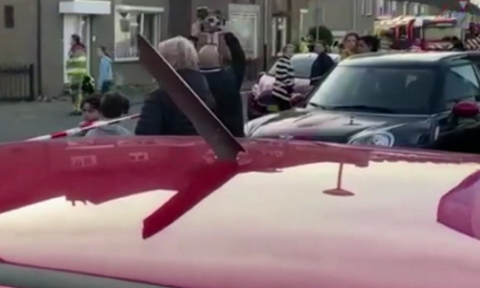 Một mảnh vỡ găm vào ô tô ở làng Meerssen hôm 20/2. Ảnh: Breaking Aviation.