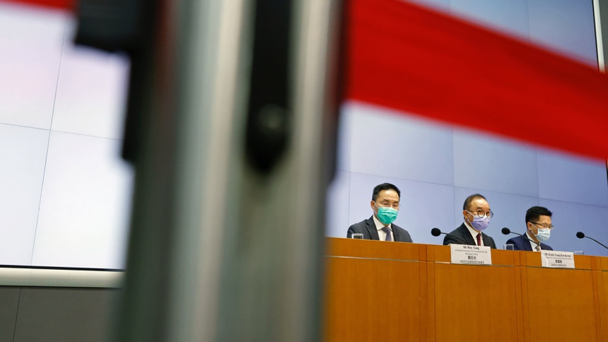 Quan chức chính quyền Hong Kong thông báo về dự luật mới hôm 23/2. Ảnh: Reuters.
