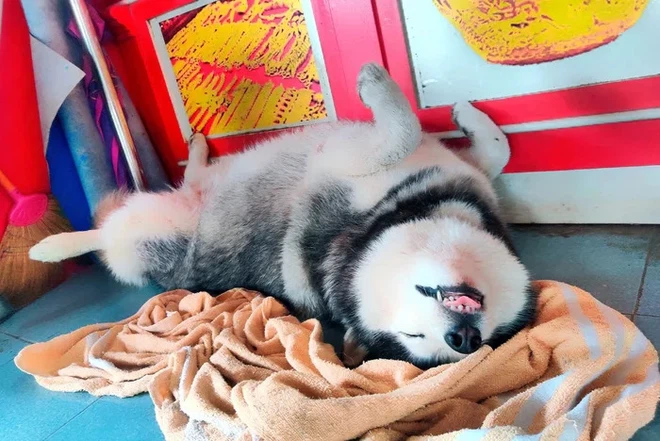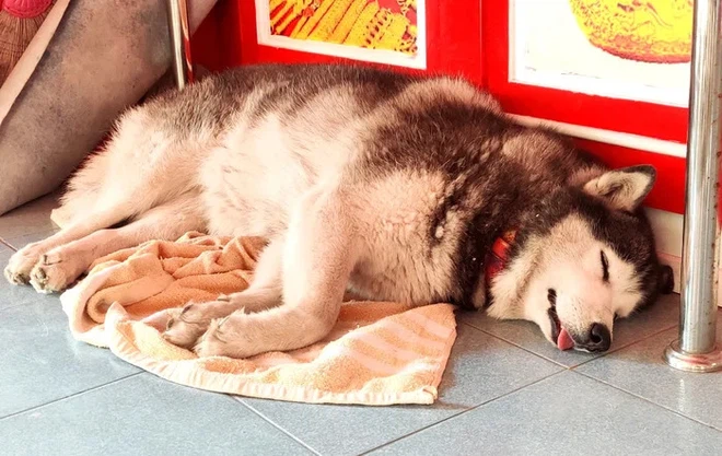 Old  Default "Thánh ngáo" Husky trông tiệm vàng nhưng ngủ say tới nỗi mặc kệ luôn kẻ cướp