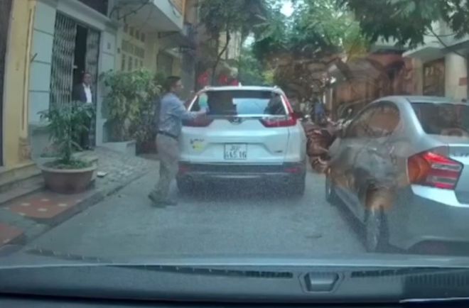 Do bề ngang ngõ 651 khá hẹp và hai xe đã đỗ choán hết đường, tài xế ô tô sau đó đã liên tục bấm còi và yêu cầu người được cho là chủ xe Honda CR-V nhường đường. Tuy nhiên, hình ảnh từ video cũng cho thấy, người đàn ông chủ xe không hợp tác và đi vào nhà, trong khi người lái xe vẫn thản nhiên lấy chổi vệ sinh xe. Thậm chí, người này sau đó còn giở thái độ thách thức, cãi “cùn” và chửi bới tài xế ô tô gắn camera.