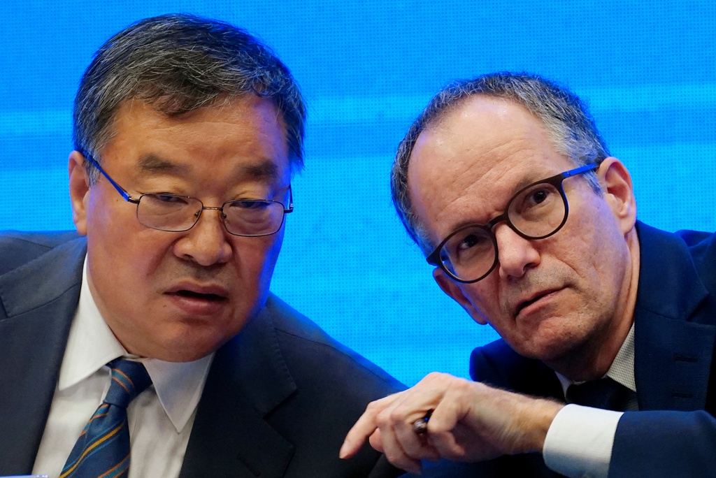 Ông Liang Wannian (trái), người đứng đầu nhóm chuyên gia Covid-19 của Ủy ban Y tế Quốc gia Trung Quốc cùng Peter Ben Embarek, trưởng nhóm điều tra WHO, trong họp báo kết thúc cuộc điều tra ở Vũ Hán. Ảnh: Reuters.