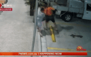 Camera ngoài cửa hàng ghi lại cho thấy tên trộm này đã bị một cụ bà tại quán bar Pimpama Tavern vật ra đường và đánh cho túi bụi.