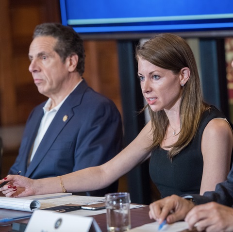 Cô DeRosa thường xuyên xuất hiện cùng ông Cuomo trong những cuộc họp báo về tình hình dịch bệnh Covid-19.