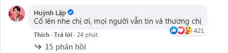 Diễn viên Huỳnh Lập cổ vũ: "Cố lên nhe chị ơi, mọi người vẫn tin và thương chị".