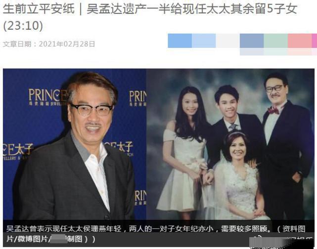 Theo Sina, trong di chúc Ngô Mạnh Đạt từng lập năm 2014. Thời điểm đó, ông chia một nửa tài sản cho vợ hiện tại, còn lại chia đều cho 5 người con.