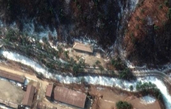 Một tòa nhà được xây lên ở vị trí mà các chuyên gia tin là lối vào đường hầm chứa vũ khí hạt nhân của Triều Tiên. Ảnh: Maxar Technologies .