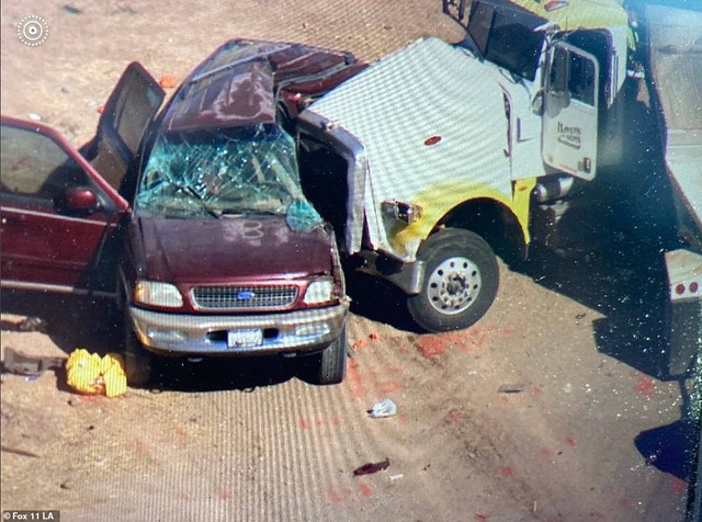 Vụ tai nạn giữa xe đầu kéo và xe SUV xảy ra vào khoảng 6h15 sáng 2/3 theo giờ địa phương trên đường cao tốc ở khu vực Holtville, cách San Diego 160 km về phía đông. (Ảnh: Fox)